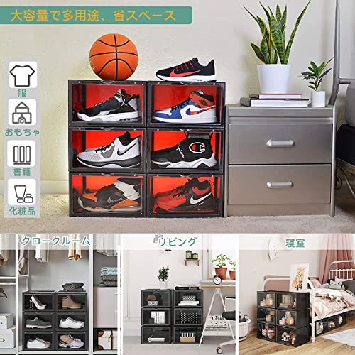?【超カッコイイディスプレイ】扉の部分は透明素材を使い、横に設置するデザインで、靴の横顔は一目然です、ディスプレイ感覚で並べることができます。自慢のシューズ、有名ブランドのコレクション、限定シューズなどをおしゃれに収納できるシーズボックスです。サイズ長36cm×横幅28cm×高さ22cm、サイズ49までのハイトップスニーカーを簡単に収納できます。