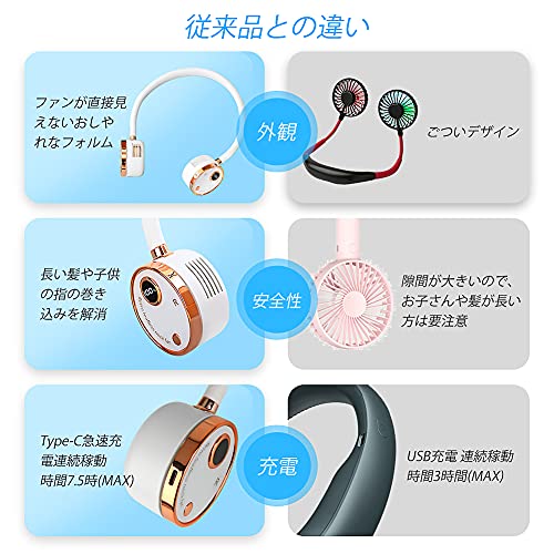 ?【革新なLEDディスプレイ】:2021年最新の首掛け扇風機は、スッキリオシャレな設計、風速やLED電源表示機能も備えているので、いつでも残りの電力をチェックして、充電が必要かどうかを判断できます。 従来のミニポータブルファンとは異なります。 首にかけるだけで涼しい!ハンズフリーで楽々使用できます。重さを忘れるほど288gの超軽量で、どんな場面でも首の負担にならず、両手解放で涼しい風を楽しめます。