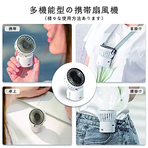 【多機能型携帯扇風機】 小型軽量で、首掛け扇風機、卓上扇風機、腰掛け扇風機,ネックラインけ扇風機などとして幅広く使えます。ネックストラップ付きで、首から下げた状態で顔に向けて涼しい風が出ます。それに、45°調整可能+特色なシリンダー形で、かんたんにテーブル上に置けます。猛熱の夏に欠かさない重宝