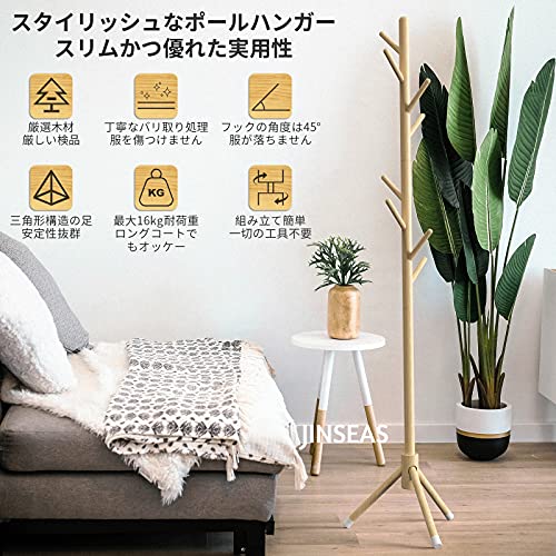 【天然木の質感】 天然の木を加工して出来たポールハンガーですので、木の温もりを感じます、表面は手触り良く滑らかな仕上がりで、丈夫である