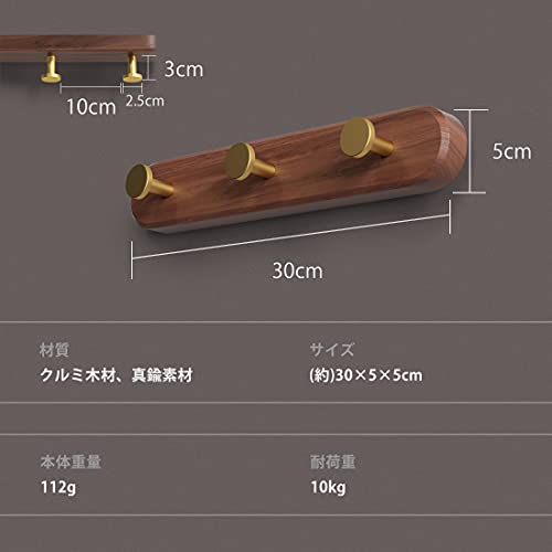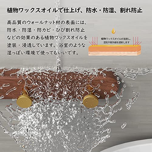 【優れた耐久性&耐荷重】天然木製ベースが植物ワックス油で仕上げ、健康で環境にやさしい。木材自体をよりよく保護し、より耐久性があります。真鍮素材で作ったフックは耐衝撃性良い、変形しづらく、表面は耐酸化性があり、錆びることがなく、色落ちの心配も要らなく、浴室のような湿っぽい環境で使ってもいいです。頑丈で耐久性が良くて、長