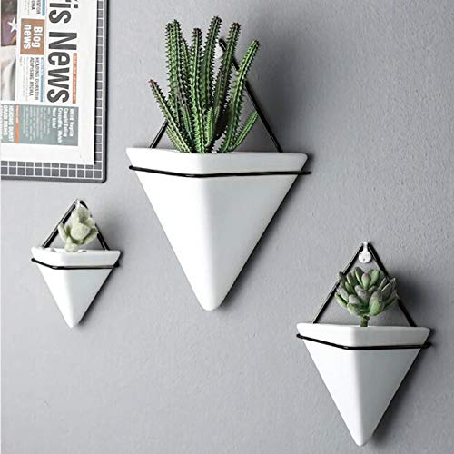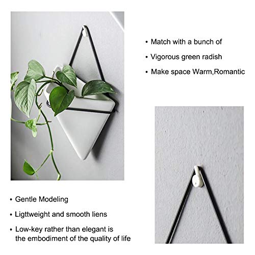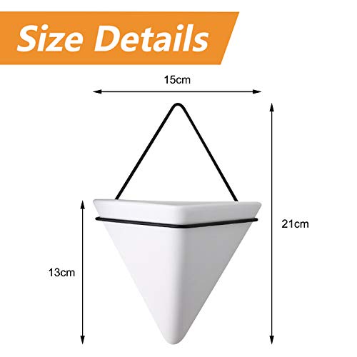 MOROBORフラワーポット、2個の白いセラミックトライアングルハンギングプランター、黒いワイヤーフレームの