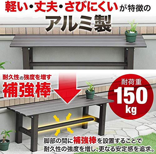 軽い!強い!お手入れ簡単のアルミ製は丈夫でたわみも少ないので人が座ってもビクともしません。雨風にも強く耐久性が高い為、長年ご使用頂けます。