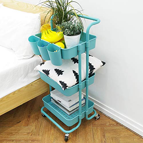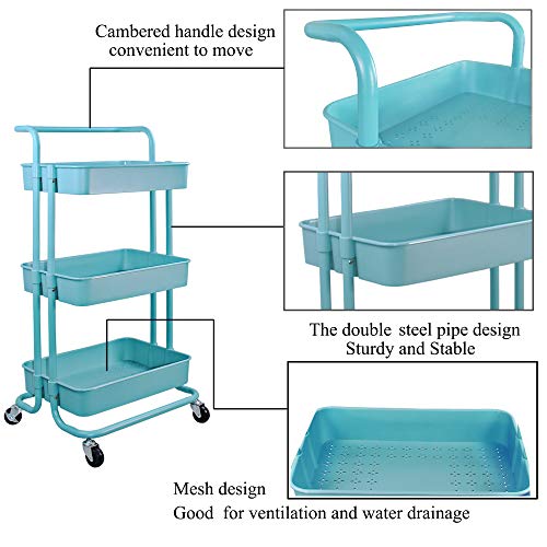 Lontenrea 多機能 3層ローリングカート オフィス キッチン 収納カート バスルーム リビングルーム 収納ラック + 3