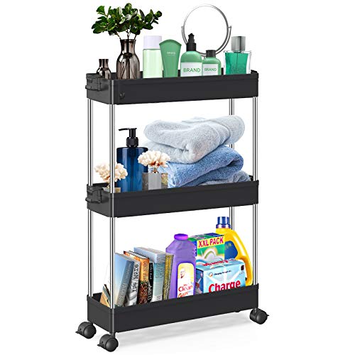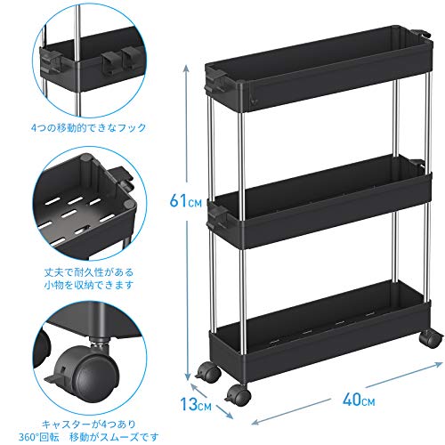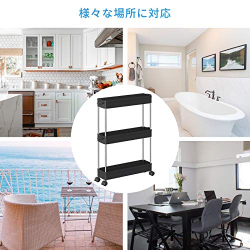 【高品質の家庭用収納 ワゴン】高級な材質は採用なので、高い安定性を誇ります。スリムボディーをして、部屋の隙間に自在に配置されています。トイレ収納、ベッドルーム、居間、子供部屋、キッチン、書店、美容室などの使用に最適して、収納力は抜群です。いろんなシーンで大活躍なキッチンワゴンです