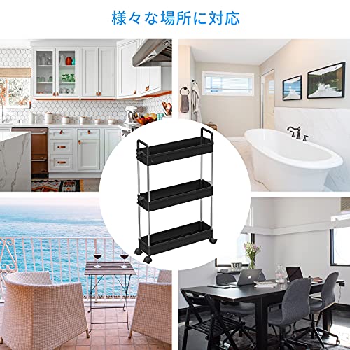 【移動便利な3段収納カート】奥行5.1インチ(約13cm)で、自宅のどんな狭い場所でも利用できます。台所、浴室、洗濯室、オフィスや車庫などのシーンにも、洗濯機と乾燥機の間にも置いてもいいです。
