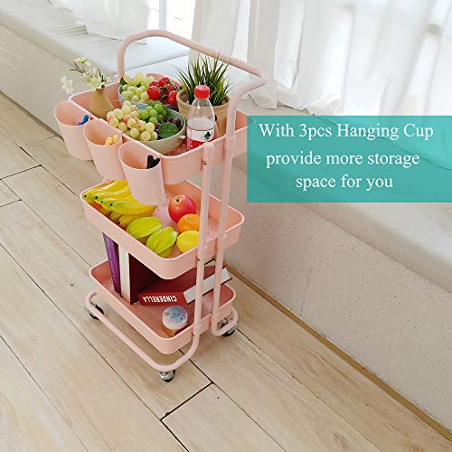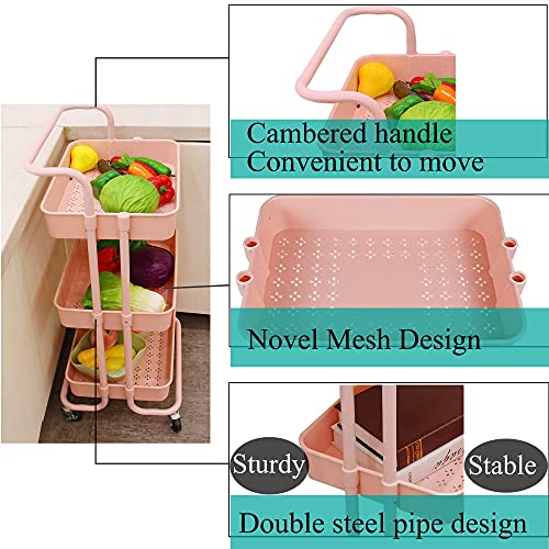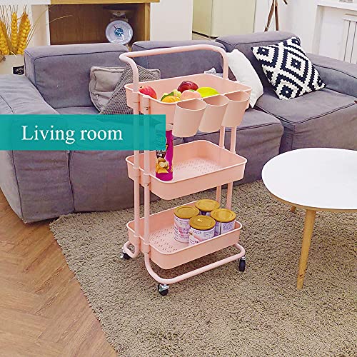 Lontenrea 多機能 3層ローリングカート オフィス キッチン 収納カート バスルーム リビングルーム 収納ラック + 3