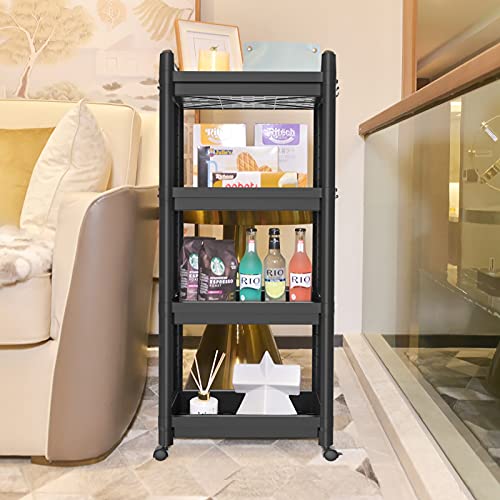 SPACEKEEPER キッチンワゴン 3段収納カート プラスチック製 キャスター付き バスケットラック 隙間収納 フック