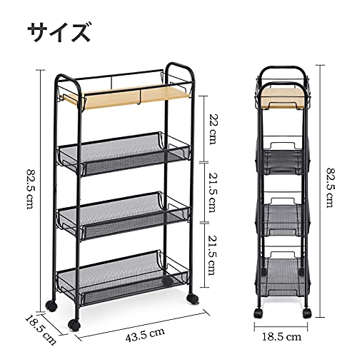 | 商品名 | キングラック キッチンワゴン 収納カート 4段 隙間収納 19cm スリム キャスター付き 収納ラック 小物 食品 調味 |