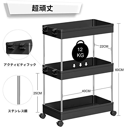【柔軟な3段収納カート】-3段スリム収納カートは22cmのデザインで、ご家庭の狭い場所でも収納できます。 クローゼット、キッチン、バスルーム、ガレージ、ランドリールーム、オフィス、または洗濯機と乾燥機の中間に適しています。