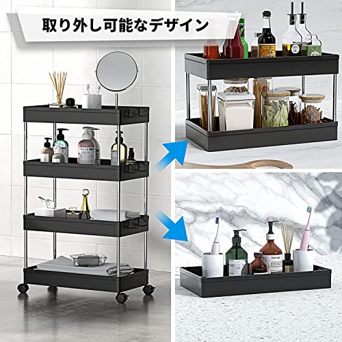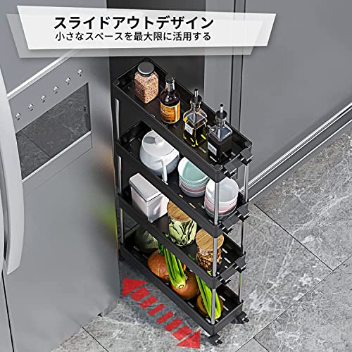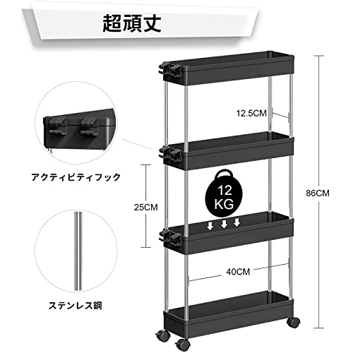 【柔軟な4段収納カート】-4段スリム収納カートは12.5cmのデザインで、ご家庭の狭い場所でも収納できます。 クローゼット、キッチン、バスルーム、ガレージ、ランドリールーム、オフィス、または洗濯機と乾燥機の中間に適しています。