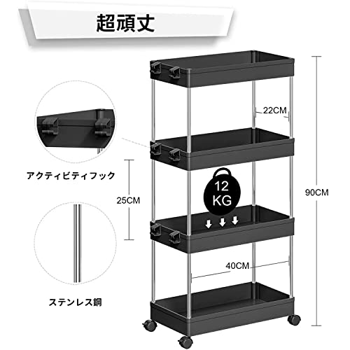 【柔軟な4段収納カート】-4段スリム収納カートは22cmのデザインで、ご家庭の狭い場所でも収納できます。 クローゼット、キッチン、バスルーム、ガレージ、ランドリールーム、オフィス、または洗濯機と乾燥機の中間に適しています。