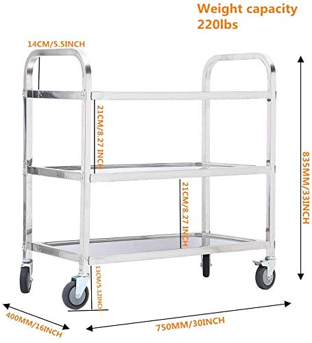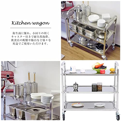uyoyous ステンレス ワゴン サービス カート 3段 組立式 業務用 収納 ワゴン キッチンカート ワゴン キャスター