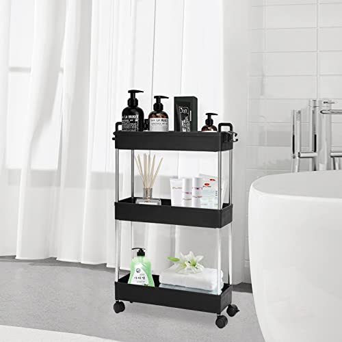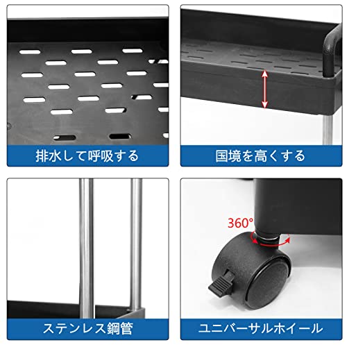【商品仕様】使用サイズ:約幅40×奥行13×高さ66cm、ブラック、重量:1.3kg。お好みに応じて、3段式または2段式のワゴンに組み立てることができます。このラックは、安全なABS環境保護プラスチックと高品質のステンレス鋼パイプで構成されています。フレームを上げることで、物の落下を防ぐことができます。