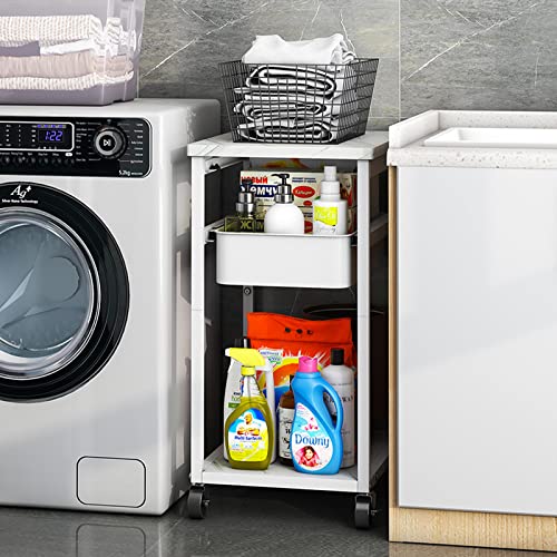 LISUEYNE キッチンワゴン 幅34×奥行40×高さ66cm 引き出し式 キャスター付き 収納かご付き オフィス収納カート ラ