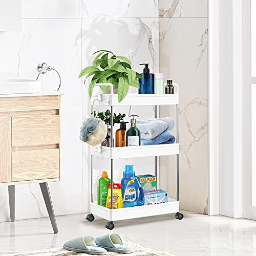【移動便利な3段収納カート】奥行8.66インチ(約22cm)で、自宅の様々な場所でも利用できます。台所、浴室、洗濯室、オフィスや車庫などのシーンにも、洗濯機と乾燥機の間にも置いてもいいです。
