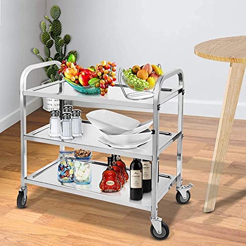 ybaymy ステンレス キッチンワゴン 3段 業務用キッチンワゴン ステンレスカート キャスター付く レンジ台 収納