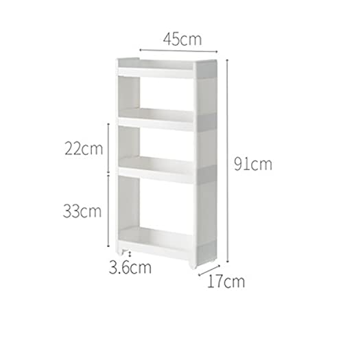 【製品仕様】この隙間収納ラックは二つタイプがあり、三段式のサイズは幅17×奥行45×高さ68cmです。四段式のは幅17×奥行45×高さ91cmです。外観はおしゃれなホワイトをしてすぐに部屋のインテリアに馴染みます。