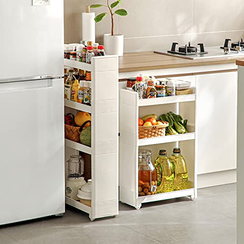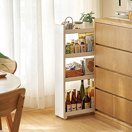隙間収納 キッチンワゴン スリム キャスター付き 4段 小物 飲料 調味料 洗剤適用 キッチン 洗面所 ベランダ リ
