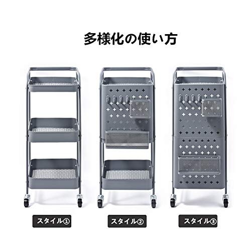 ツーフ キッチンワゴン 収納カート トローリー 3段 キャスター付き ハンドル付き バスケットラック スリム オ
