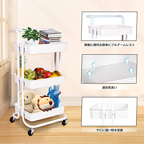 キッチンワゴン EXQUI 収納ワゴン キャスター付き 3段 キッチン収納 大容量 移動式 キッチンラック 組立簡単 台