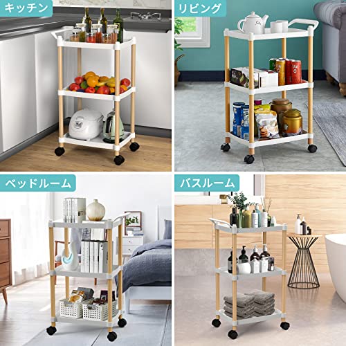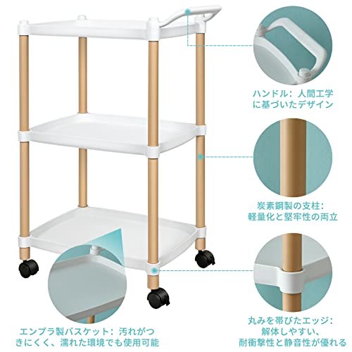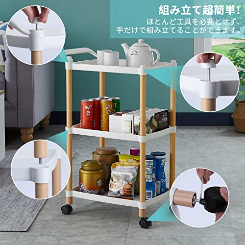 HAROK キッチンワゴン 3段キッチンラック キャスター付きワゴン 収納カート すきま収納 移動式 組立簡単 台所/