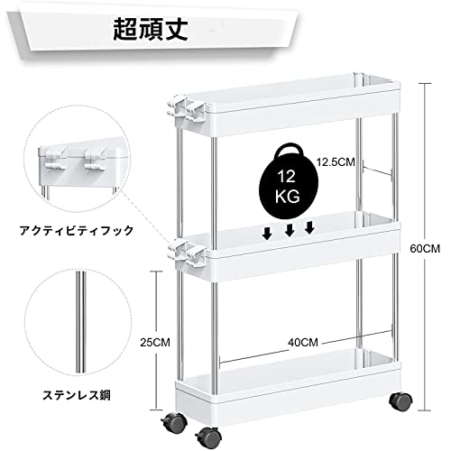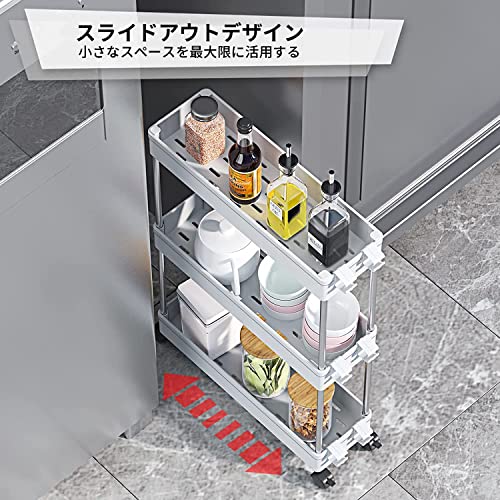 【柔軟な3段収納カート】-3段スリム収納カートは12.5cmのデザインで、ご家庭の狭い場所でも収納できます。 クローゼット、キッチン、バスルーム、ガレージ、ランドリールーム、オフィス、または洗濯機と乾燥機の中間に適しています。
