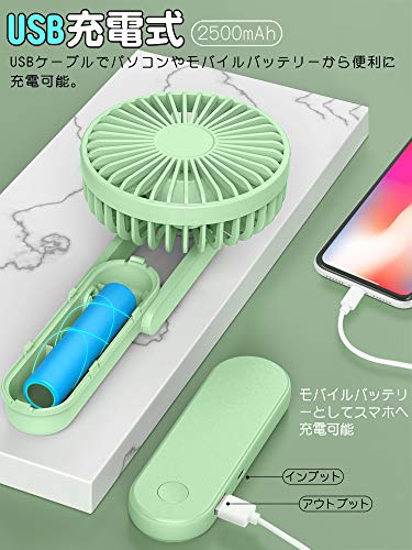 携帯扇風機 手持ち/卓上 usb扇風機 ハンディファン 2500mAh 大風量 静音 3段階風量調節 折り畳み ミニ扇風機 150g