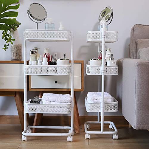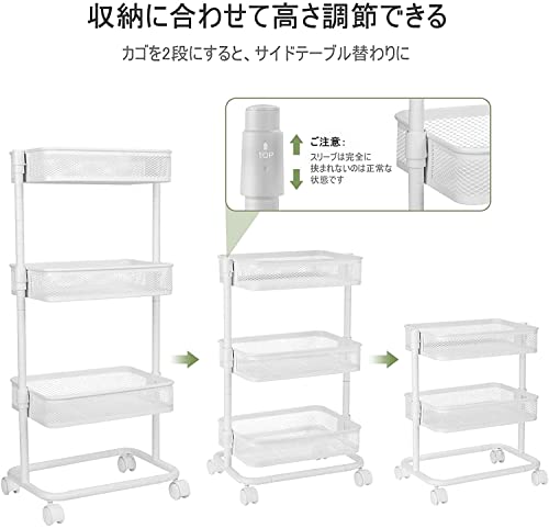 LeHom 高さ調節 キッチンワゴン 軽量 組み立て簡単 ワゴン 収納ラック キャスターワゴン (白)