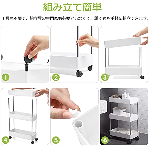 【組み立て簡単】このキッチンワゴンは組み立て簡単、女性一人でも組み立てられます。追加の道具は必要ありません。 素早く簡単なスナップ式収納棚 組み立て。わずか数分でキッチンカートを回転させることができます。