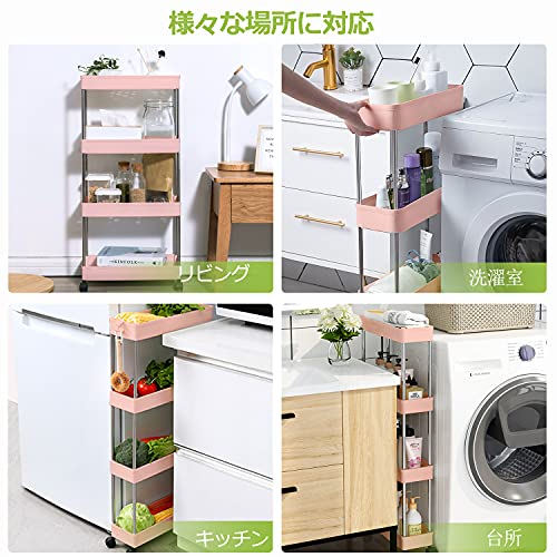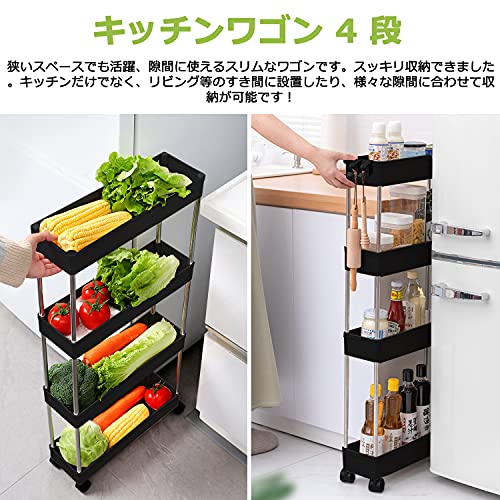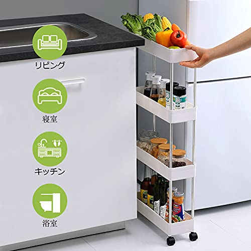 キッチンワゴン キャスター付き 4段 収納カート ローリングラック 幅12.5 x 奥行40 x 高さ86cm おしゃれ 隙間収納