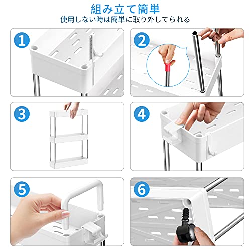 【移動便利な3段収納カート】奥行5.1インチ(約13cm)で、自宅のどんな狭い場所でも利用できます。台所、浴室、洗濯室、オフィスや車庫などのシーンにも、洗濯機と乾燥機の間にも置いてもいいです。