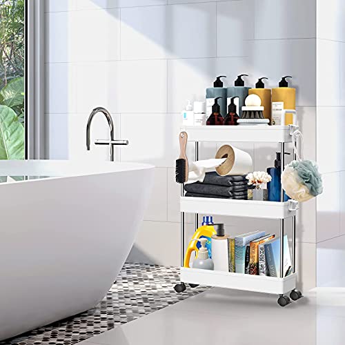 SOLEJAZZ キッチンワゴン 3段 収納カート 隙間収納 移動式 取っ手付き キッチン バスルーム 洗濯室 狭い場所用