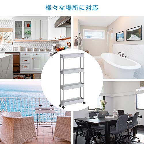 【高品質の家庭用収納 ワゴン】高級な材質は採用なので、高い安定性を誇ります。スリムボディーをして、部屋の隙間に自在に配置されています。トイレ収納、ベッドルーム、居間、子供部屋、キッチン、書店、美容室などの使用に最適して、収納力は抜群です。いろんなシーンで大活躍なキッチンワゴンです