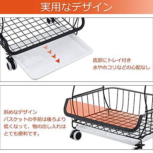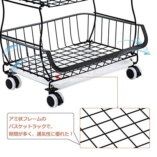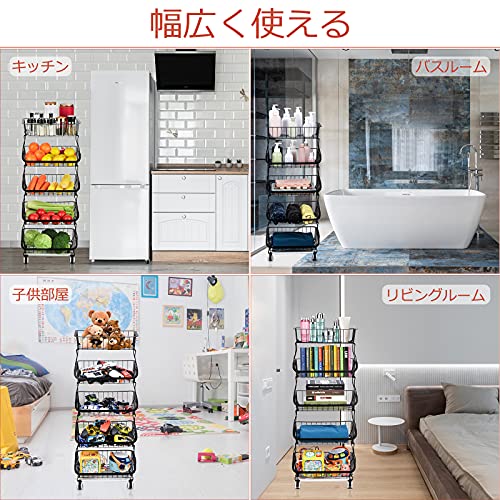 Toplife バスケットワゴン キャスター付き 野菜ワゴン 5段 スタッキングバスケットラック トレイ付属 組立簡単