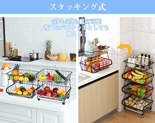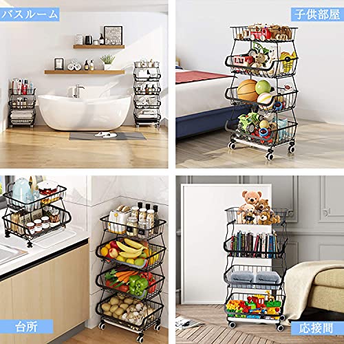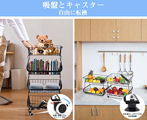 キッチンワゴン トレイ付属 キャスター付き スタッキング式 バスケット 調味料/皿/野菜/服収納 洗濯室 バルコ