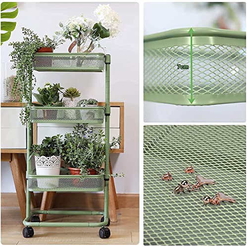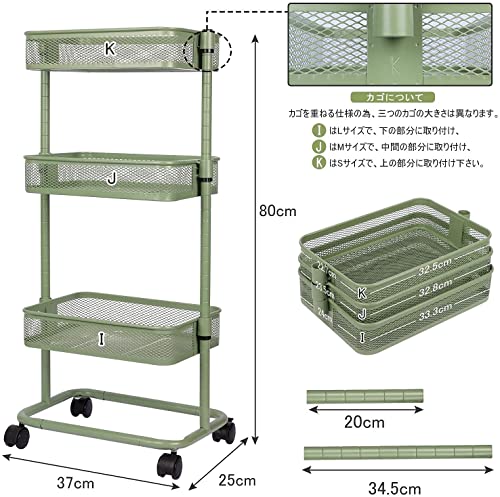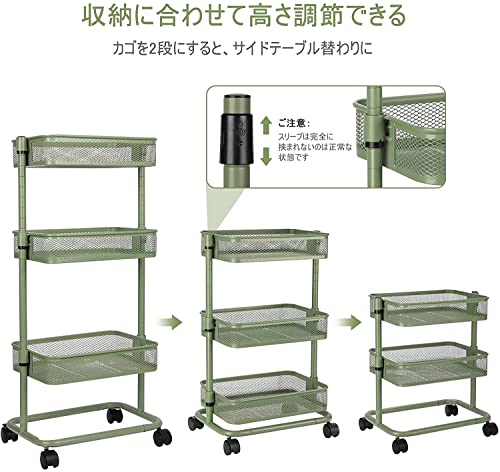 LeHom 高さ調節 キッチンワゴン 軽量 組み立て簡単 ワゴン 収納ラック キャスターワゴン (緑)
