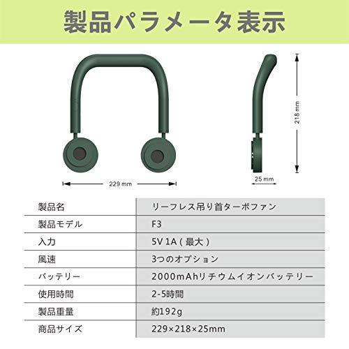 | 商品名 | 首掛け扇風機 携帯扇風機 羽なしデザイン USB充電式 マルチアングル調整 3段階風量調節 超大容量 ミニ扇風機 |