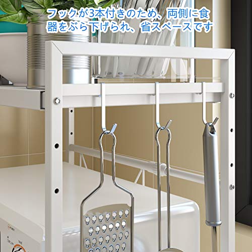 LZSHOME レンジラック レンジ上ラック 電子レンジ台 キッチンラック トースターラック 幅伸縮式 棚板高さ三段