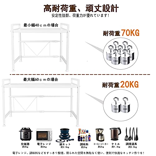 レンジ上ラック レンジラック 伸縮式 幅(40~60cm) 棚板高さ調節可 耐荷重70kg