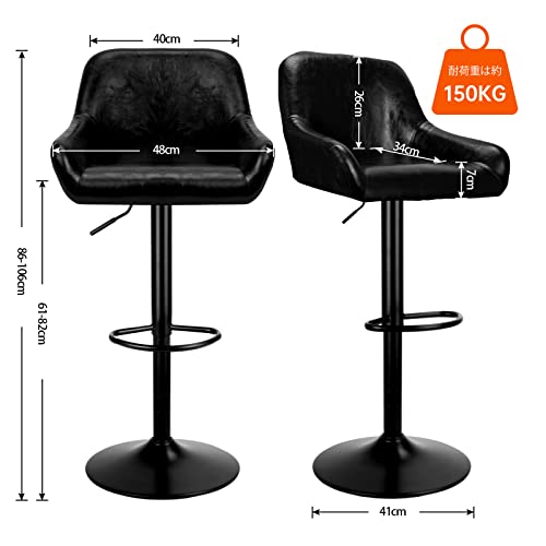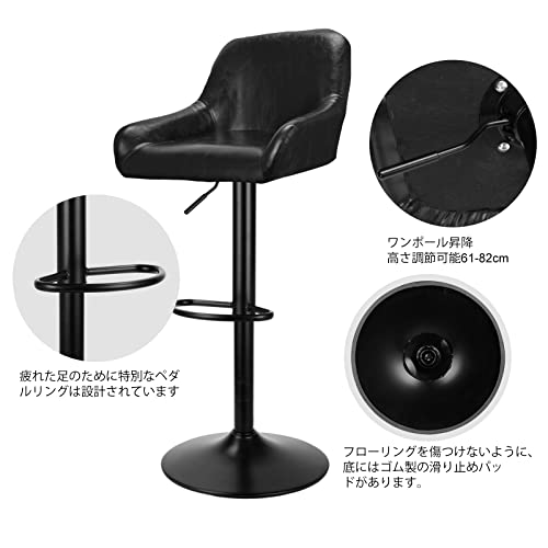 lsccgg カウンターチェア 1脚 おしゃれ バーチェア ハイチェア 昇降 回転 PUレザー 背もたれ キッチン 椅子 ブラ