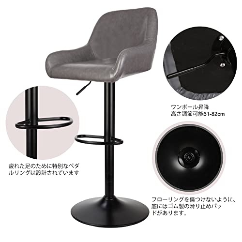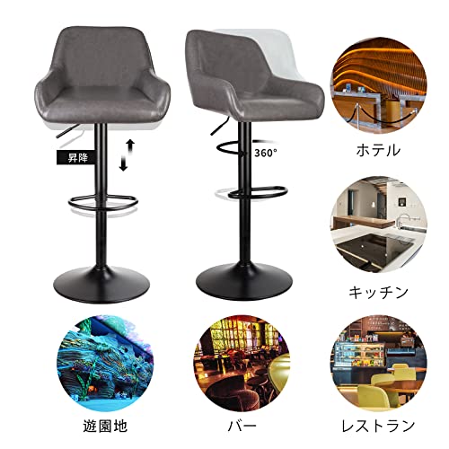 lsccgg カウンターチェア 1脚 おしゃれ バーチェア ハイチェア 昇降 回転 PUレザー 背もたれ キッチン 椅子 グレ