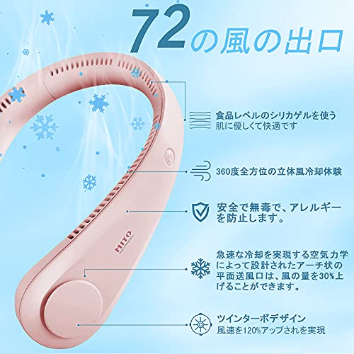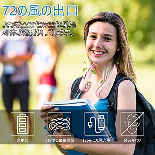 【2021人気ネッククーラー・羽根無し・両手解放】羽根なしデザインで、髪が引っ掛かったり、異物を挟み込む事をご心配なく。安全性UP!古いタイプの手持ちの扇風機より便利です。凉しい夏で両手を解放して、やりたいことを何でもしてください。軽くて持ち運びに便利な首かけ扇風機は夏の外出に必要なものです。