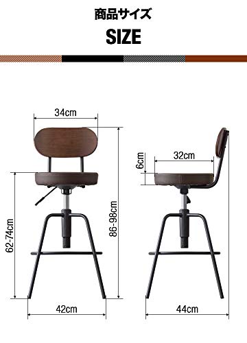 サイズ 本体 : (約)42cm×44cm×86~98cm 座面の高さ : (約)62cm~74cm