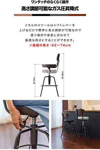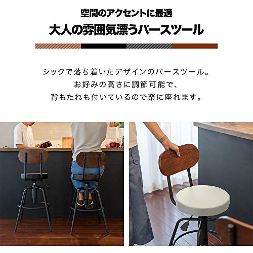 ottostyle.jp アンティーク風 背付きバースツール カウンターチェア ガス圧昇降式 高さ調節 ウッド 背もたれ