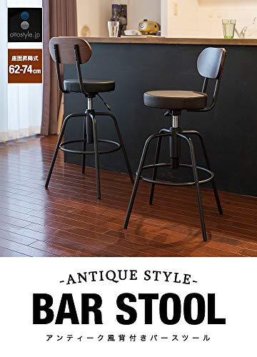 | 商品名 | ottostyle.jp アンティーク風 背付きバースツール カウンターチェア ガス圧昇降式 高さ調節 ウッド 背もたれ |