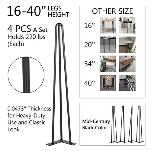 【プレミアム品質】数量:4台; 色:黒; 脚の高さ:76cm;チューブの厚さ:1mm。76cmのヘアピンテーブル脚は炭素鋼で構成され、安定性のための安定した3ロッド設計が特徴です。粉体塗装クラフトで表面が防錆性で滑らかです。