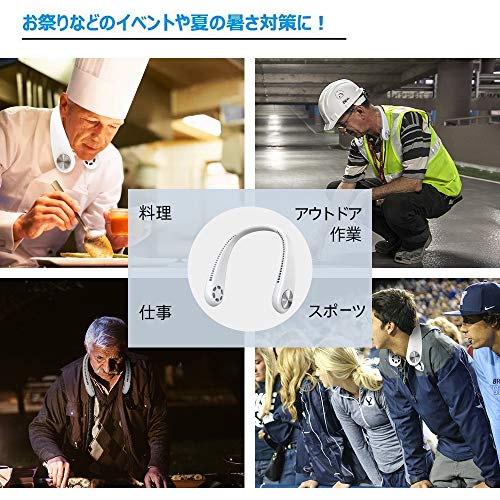 【2021新登場首からかける携帯扇風機】2021年最新モードmini ネック冷却クーラー。改良されたポータブル扇風機です。人間工学デザイン、また高密度シリコン素材を採用して、わずか220gになり、長時間装着してもねばねばしません、首周りで48個吹き出し口を採用しており製品内部は空気が急速流通してるので逆に首と接触部分は涼しい感触があり、快適な装着体験を与えます。ハンズフリーのデザインをヘッドフォンの形に変え、手を自由にして他のことをしてください