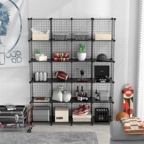 SIMPDIY 本棚 大容量 整理棚 ワイヤー収納ラック 組み立て式 衣類収納ボックス 便利な ワードロ (20ボックス, 黒)