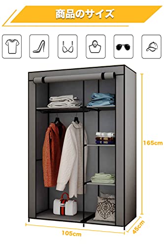 【抜群の収納力 クローゼット】幅105×奥行45×高さ165cm,商品重量:3.1KG。豊富な収納スペースがあり、衣類はもちろん、箱物などをまるごと収納出来可能です。部屋に収衣類はもちろん小物や箱物もしまえます。軽量で簡単に組み立てられますので、寮や単身赴任などにも気軽に使います。